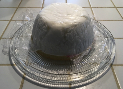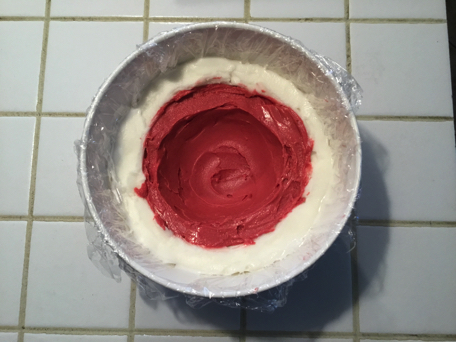 2. Par la suite, démoulez l'assemblage de crème glacée sur le gâteau. N'oubliez pas d'enlever la pellicule plastique !