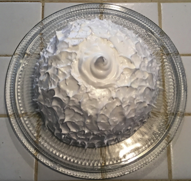 3. Recouvrez le tout de meringue en vous amusant à créer des formes et des pics. Une spatule est fort utile pour ne laisser aucun résidu de meringue dans le bol !